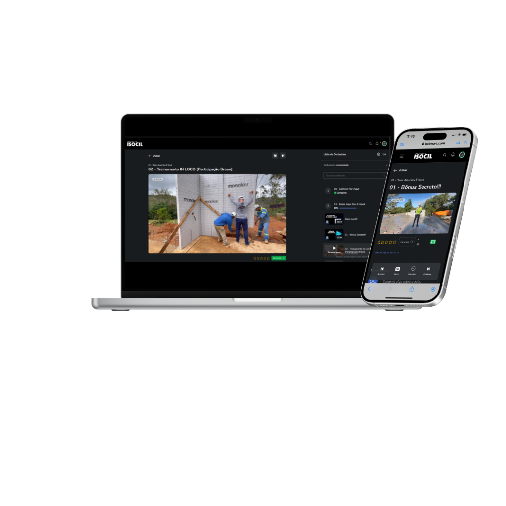 O programa mais estratégico do portfólio. Você vai além da técnica: aprende a financiar casas para clientes, tirar licenciamento de obras MONOLEV na prefeitura e escalar seu negócio na construção civil. Inclui 1 mentoria online exclusiva e acesso ao grupo de profissionais indicados pela ISOCIL.