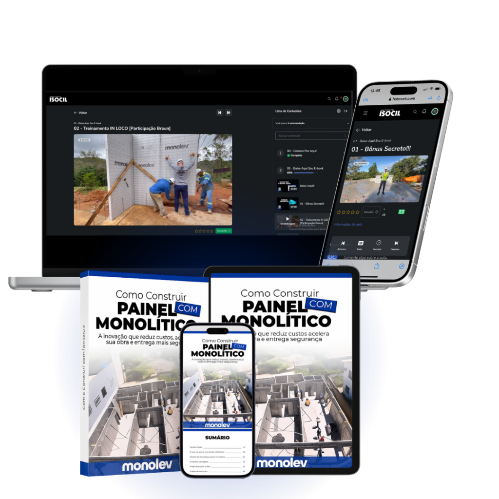 Nossa área de membros foi pensada de forma didática e criativa para guiar o aluno pelas etapas essenciais na jornada de construção com painéis monolíticos.